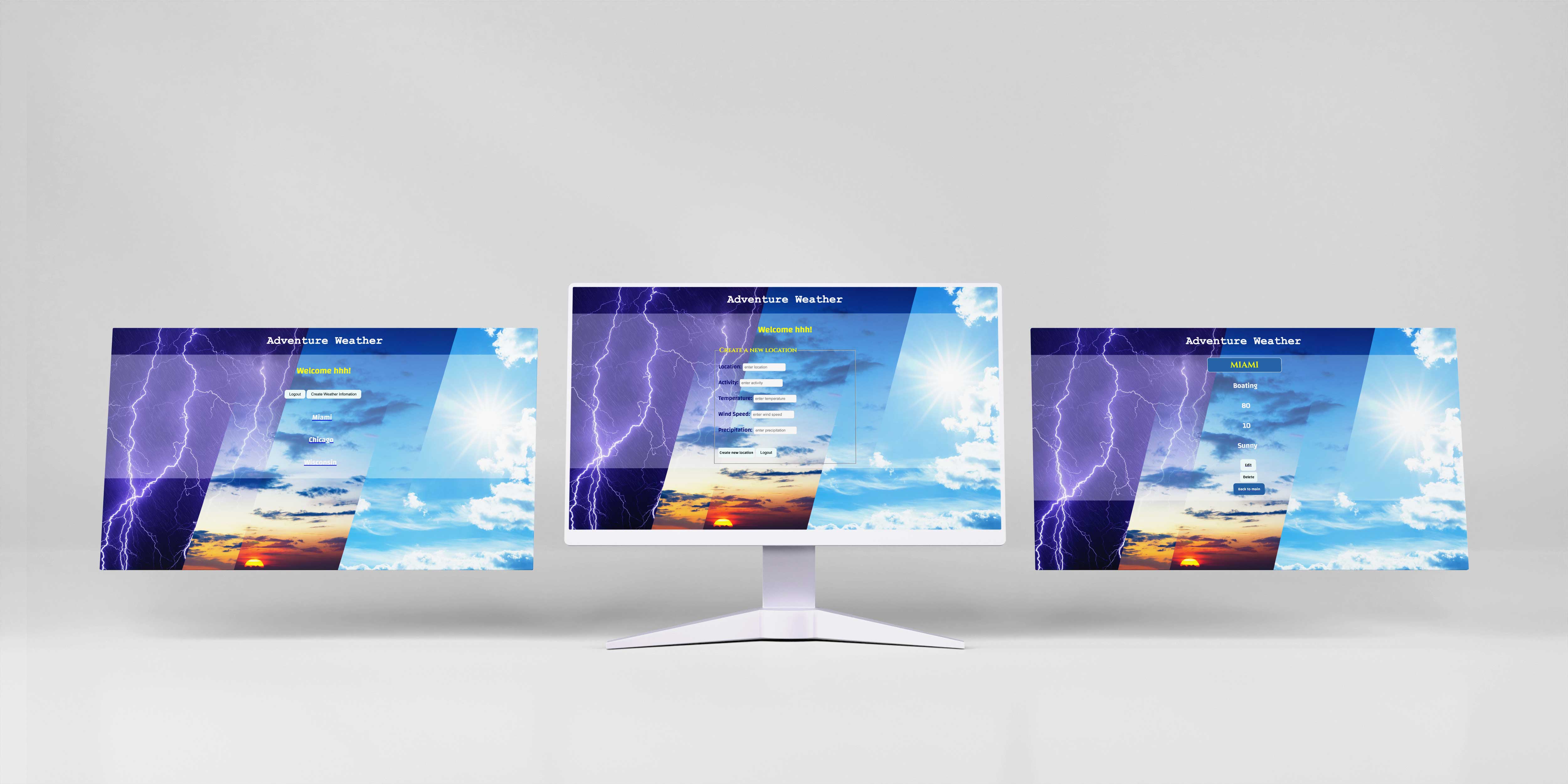 The user should have the ability to create an account and/or log in and retrieve weather information tailored for outdoor activities, including details such as location, activity, temperature, wind speed, and precipitation. Additionally, they should be able to perform various operations such as create, edit, delete, and update to manage the information.