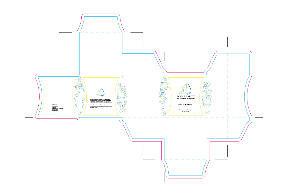 For the moisturizer box, I designed it the way to look like a body shape. The dent on the corners resembles the body shape and the pattern design resembles molecules.