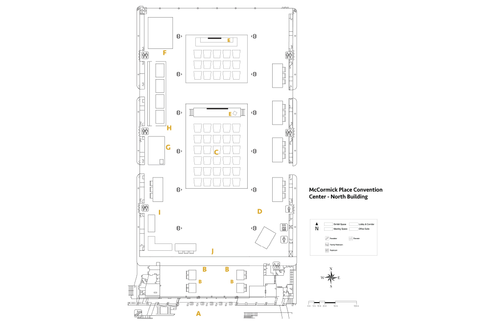 On the right is the floor plan of the McCormick Place North Building. Since the event will be happening only in one hall, I excluded the other hall that is attached. The floor plan is taken from their website.